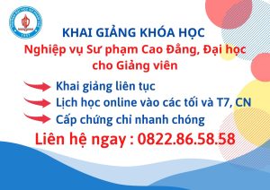 Lịch học lớp Nghiệp vụ sư phạm dạy trình độ sơ cấp và cao đẳng, trung cấp Khai giảng: 18h30 ngày 05/01/2024 Hình thức học: Học trực tuyến qua phần mền Zoom Học phí: Hệ sơ cấp: 2.000.000đ/01 người Hệ CĐ, TC: 2.500.000đ/01 người KẾ HOẠCH ĐÀO TẠO ( dự kiến) BỒI
