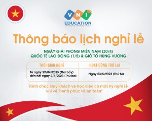 Căn cứ vào Quy định của Bộ Luật Lao động 2019 của nước CHXHCNVN về nghỉ các ngày Lễ lớn trong năm; Căn cứ quy định nghỉ lễ Tết công ty; Tập đoàn giáo dục VNI thông báo về việc nghỉ ngày
