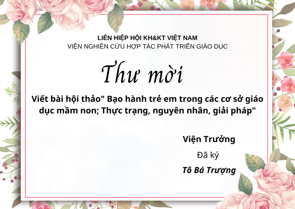 Thư mời tham gia viết bài hội thảo” Bạo hành trẻ em trong các cơ sở giáo dục mầm non; Thực trạng, nguyên nhân, giải pháp”